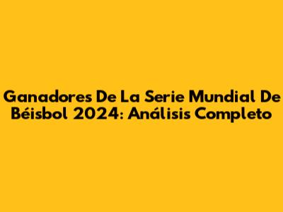 Ganadores De La Serie Mundial De Béisbol 2024: Análisis Completo