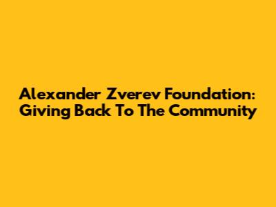 Alexander Zverev Foundation: Giving Back To The Community