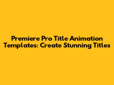 Premiere Pro Title Animation Templates: Create Stunning Titles