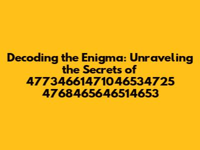 Hey guys, let's dive headfirst into something a bit... mysterious. We're going to crack the code on 47734661471046534725 4768465646514653. Now, I know what you're thinking: "Whoa, what is that?" Well, that's exactly what we're here to find out! This isn't your everyday topic; it's a deep dive, a puzzle, and potentially, a treasure hunt of information. We'll explore what these numbers might represent, the context they could exist in, and maybe, just maybe, uncover a hidden meaning. Get ready to put on your detective hats, because we're about to embark on an exciting journey of discovery. Think of it as a digital scavenger hunt where the prize is understanding. I'll make sure to break it down, making it super easy to follow. No complex jargon or confusing terms, I promise. Our goal? To turn those cryptic numbers into something understandable, and maybe even fascinating. So, grab your favorite beverage, get comfy, and let's get started on cracking this digital code!