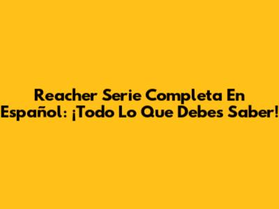 Reacher Serie Completa En Español: ¡Todo Lo Que Debes Saber!