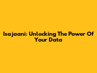 Isajaani: Unlocking The Power Of Your Data