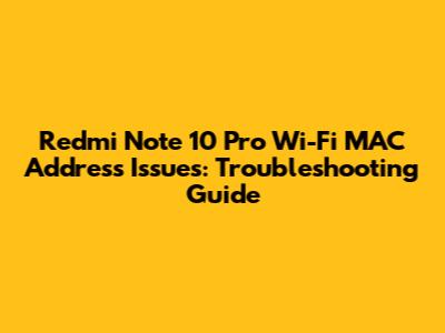 Common Redmi Note 10 Pro Wi-Fi MAC Address Problems