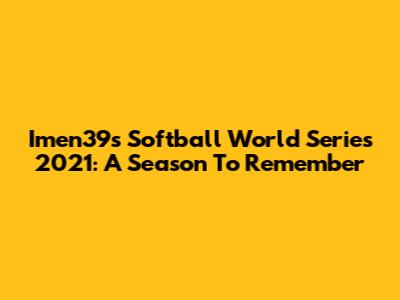 Imen39s Softball World Series 2021: A Season To Remember