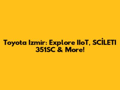 Toyota Izmir: Explore IIoT, SCİLETI 351SC & More!