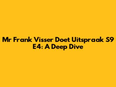 Hey guys! Welcome back to our ultimate guide on the much-loved Dutch TV show, "Mr. Frank Visser Doet Uitspraak." Today, we're diving deep into Seizoen 9 Aflevering 4, a particularly interesting episode that had everyone talking. Frank Visser, our favorite judge, is back to sort out some neighborhood disputes, and believe me, these can get messy! In this episode, we see Frank tackling yet another complex case that really tests his patience and legal prowess. He's known for his no-nonsense approach, and this episode is no exception. We’ll be breaking down the core issues, the arguments presented, and, of course, Frank's final verdict. Whether you’re a long-time fan or new to the show, understanding the dynamics of these disputes and how Frank resolves them offers fascinating insights into conflict resolution and human nature. Stick around as we unpack everything you need to know about Seizoen 9 Aflevering 4, guys! This episode is packed with drama, emotion, and ultimately, a resolution that aims to bring peace back to the involved parties.