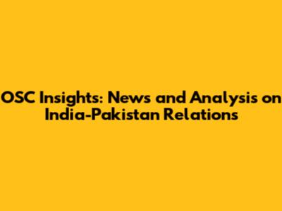 OSC Insights: News And Analysis On India-Pakistan Relations