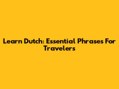 Learn Dutch: Essential Phrases For Travelers