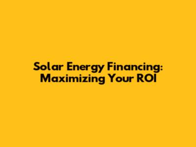 Solar Energy Financing: Maximizing Your ROI