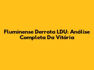 Fluminense Derrota LDU: Análise Completa Da Vitória
