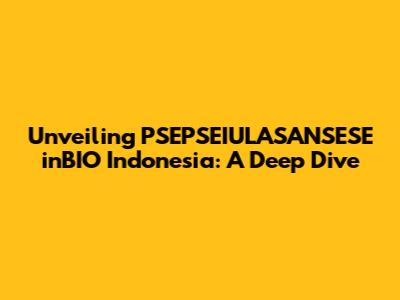 Hey guys! Let's dive deep into the fascinating world of PSEPSEIULASANSESE inBIO Indonesia. This isn't just a mouthful; it represents a significant entity, and understanding it is key to grasping certain dynamics within the Indonesian landscape. We're going to break down what it is, why it's important, and what it all means for you. Think of this as your one-stop guide, simplifying complex concepts and making them easy to digest. Ready to get started? Let’s jump right in!